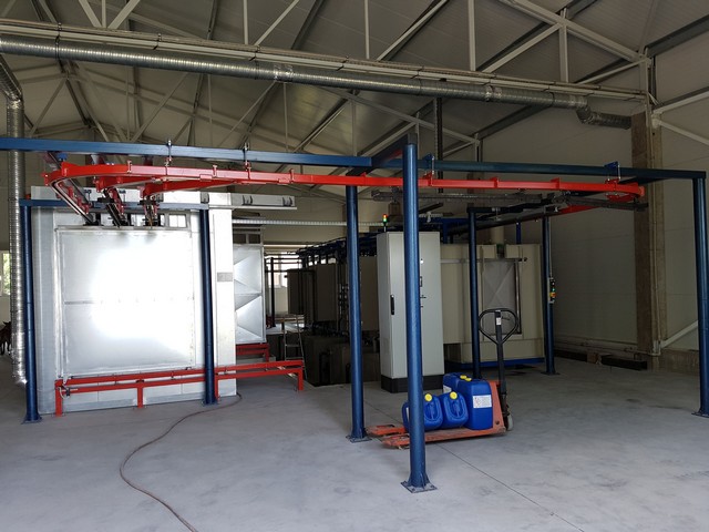 Automata porszóró kabin és tűzoltó rendszer (automata szórástechnikával)